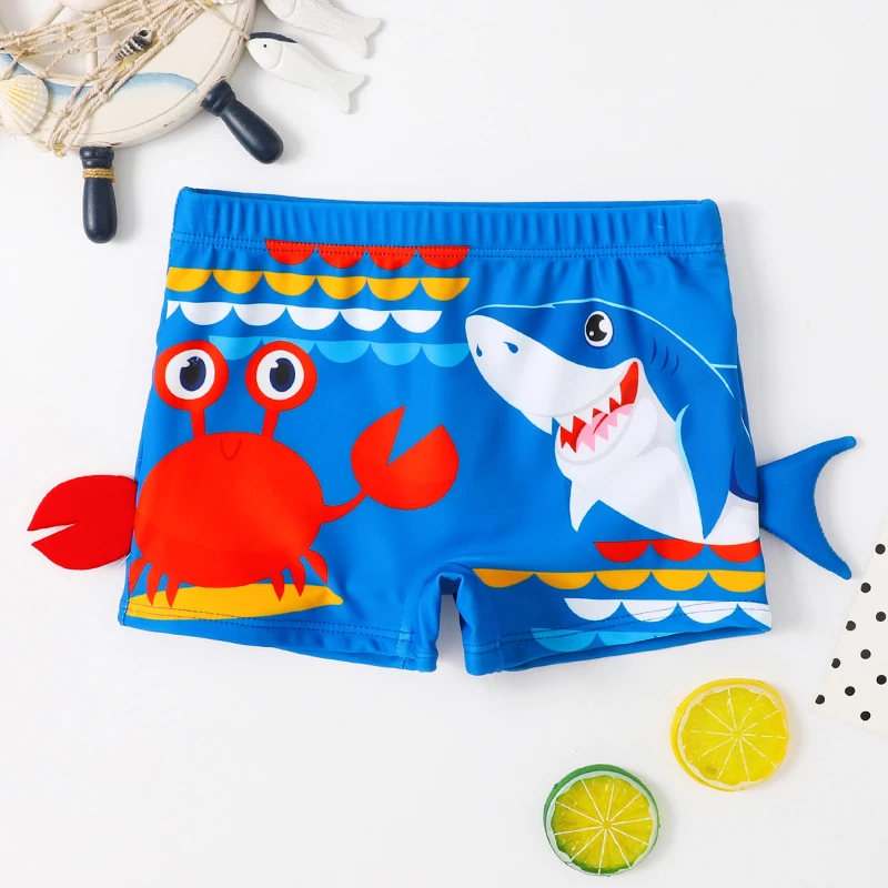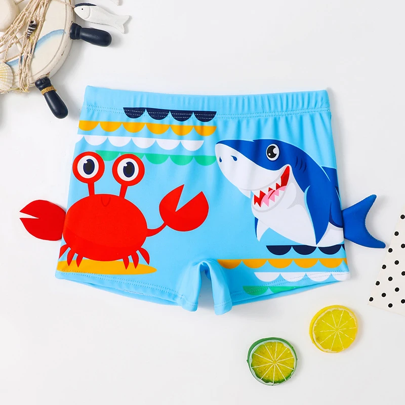 Boys Beach Trunks Toddler Boy Cartoon Crab And Shark Graphic Swim Shorts Wth Hat 2pcs Set For Swimming Beach Kids Summer Clothes