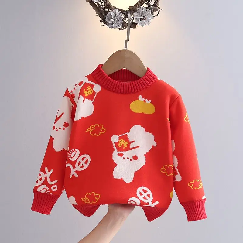 Girls' Sweater Autumn/Winter New Thickened Fashion Children's Knitted Sweater Girls' Top Sweet and Cute
