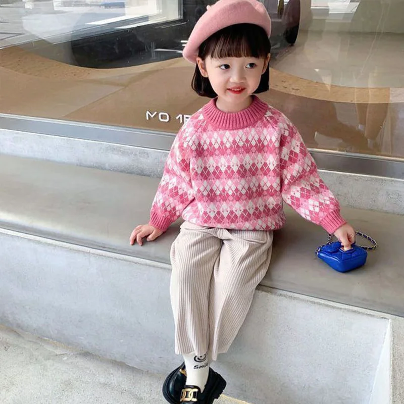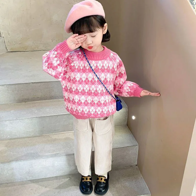Girls' Sweater Thickened Autumn/Winter New Fashionable Versatile Children's Knitted Sweater Girls' Top Sweet and Cute