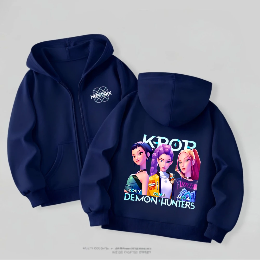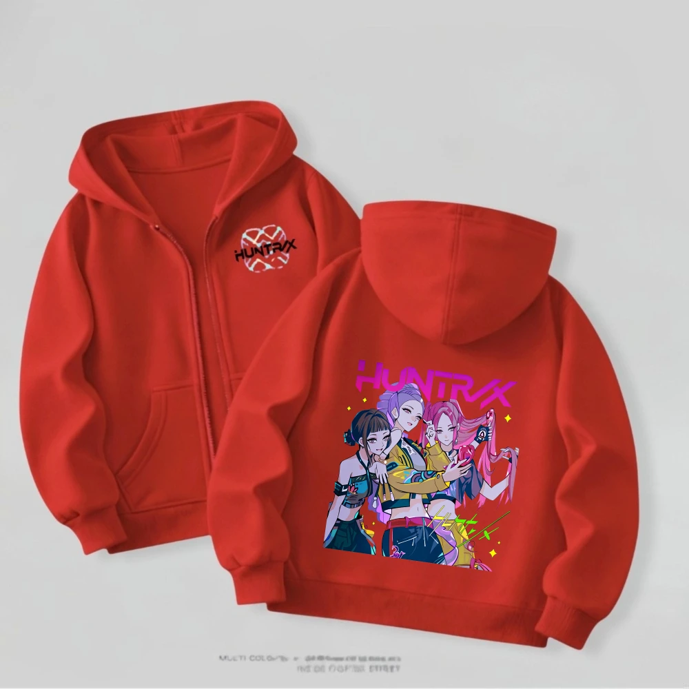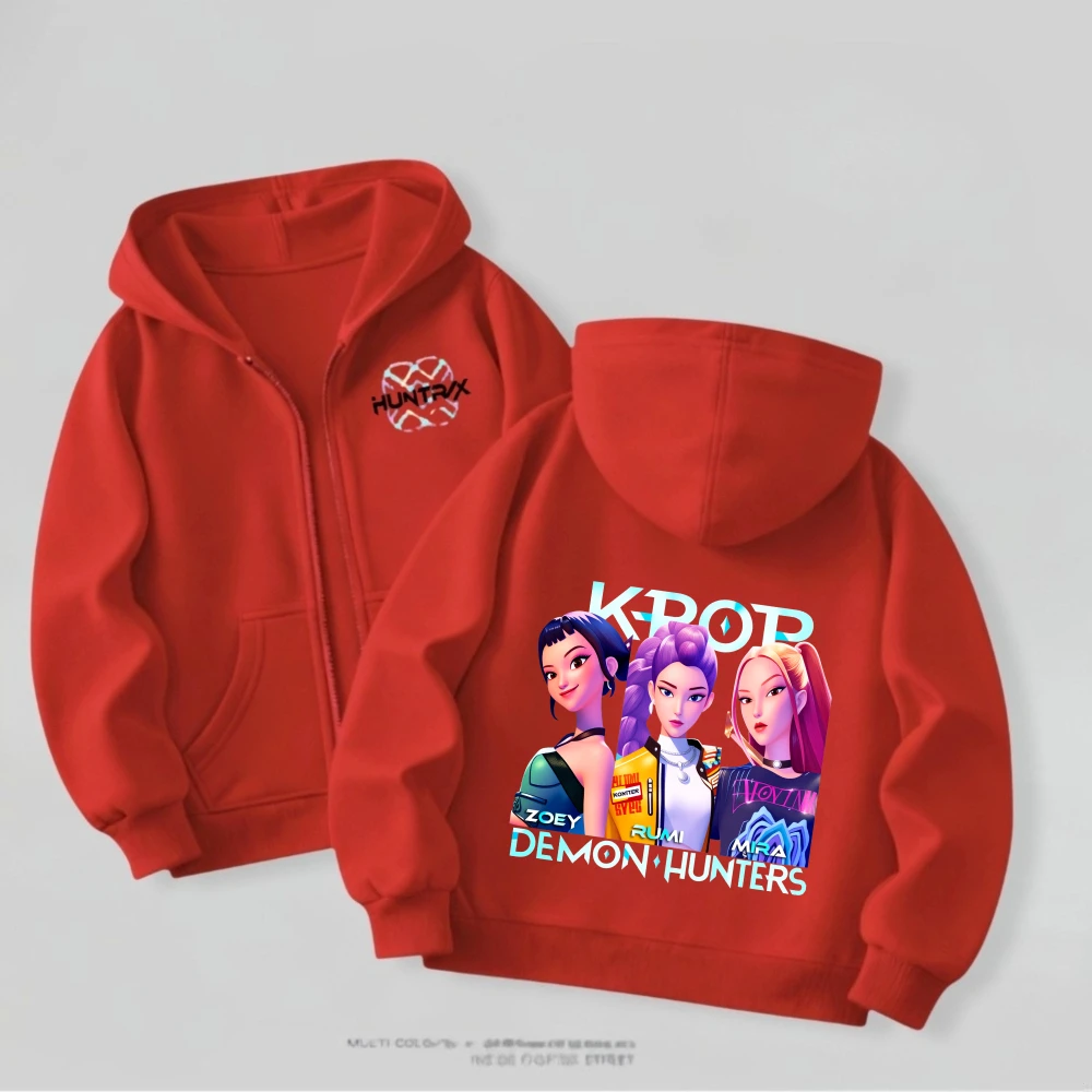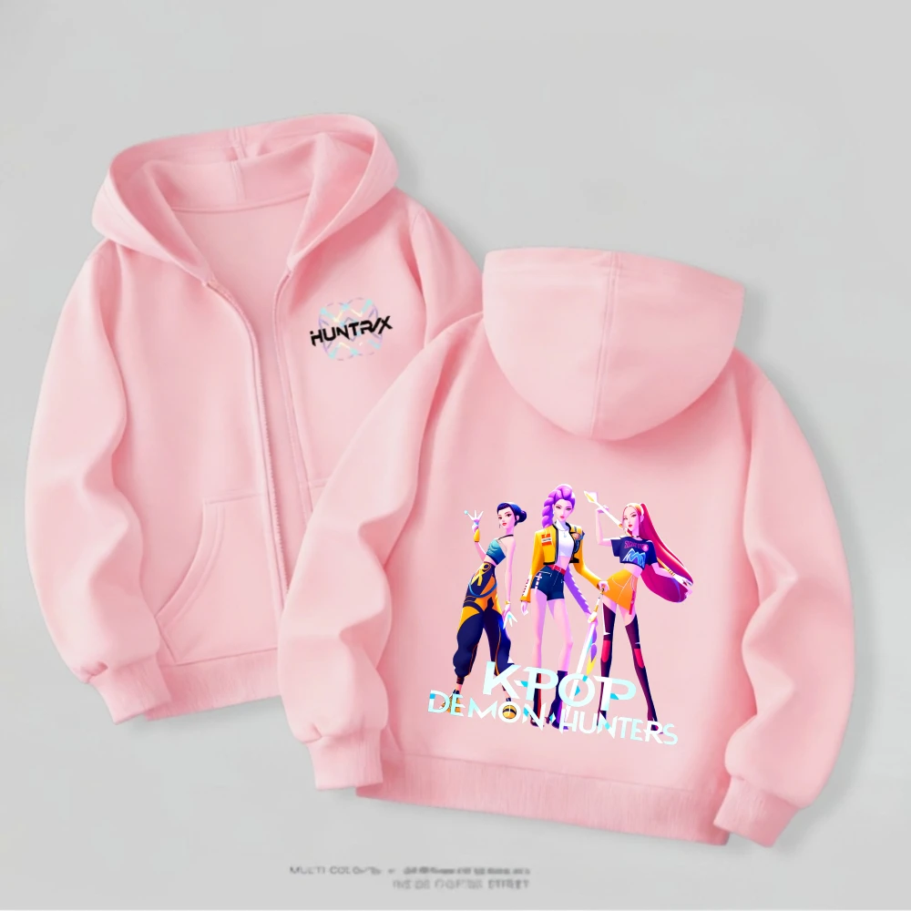 Kpop Demon Hunters Girls Hooded Jacket Spring New Kids Clothing Casual Cartoon Outerwear Children's Clothes Fashion Coats Thin
