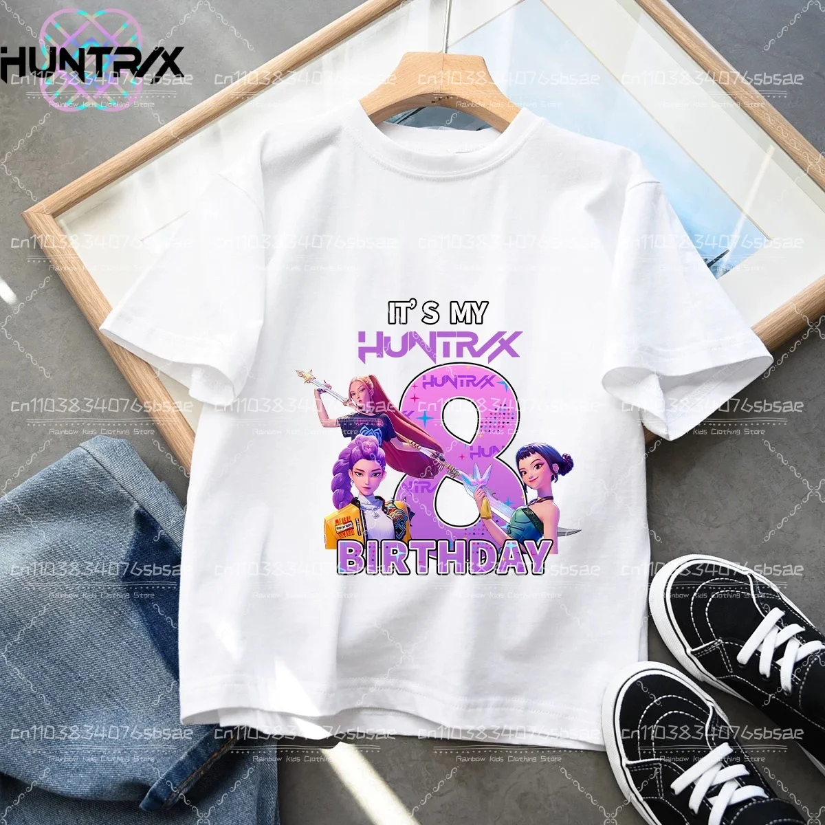 Kpop Demon Hunters Number T-shirt Kawaii Rumy Birthday Tops Party Wear Girls Tee Summer Short Sleeve Cotton Kid Clothes Boutique