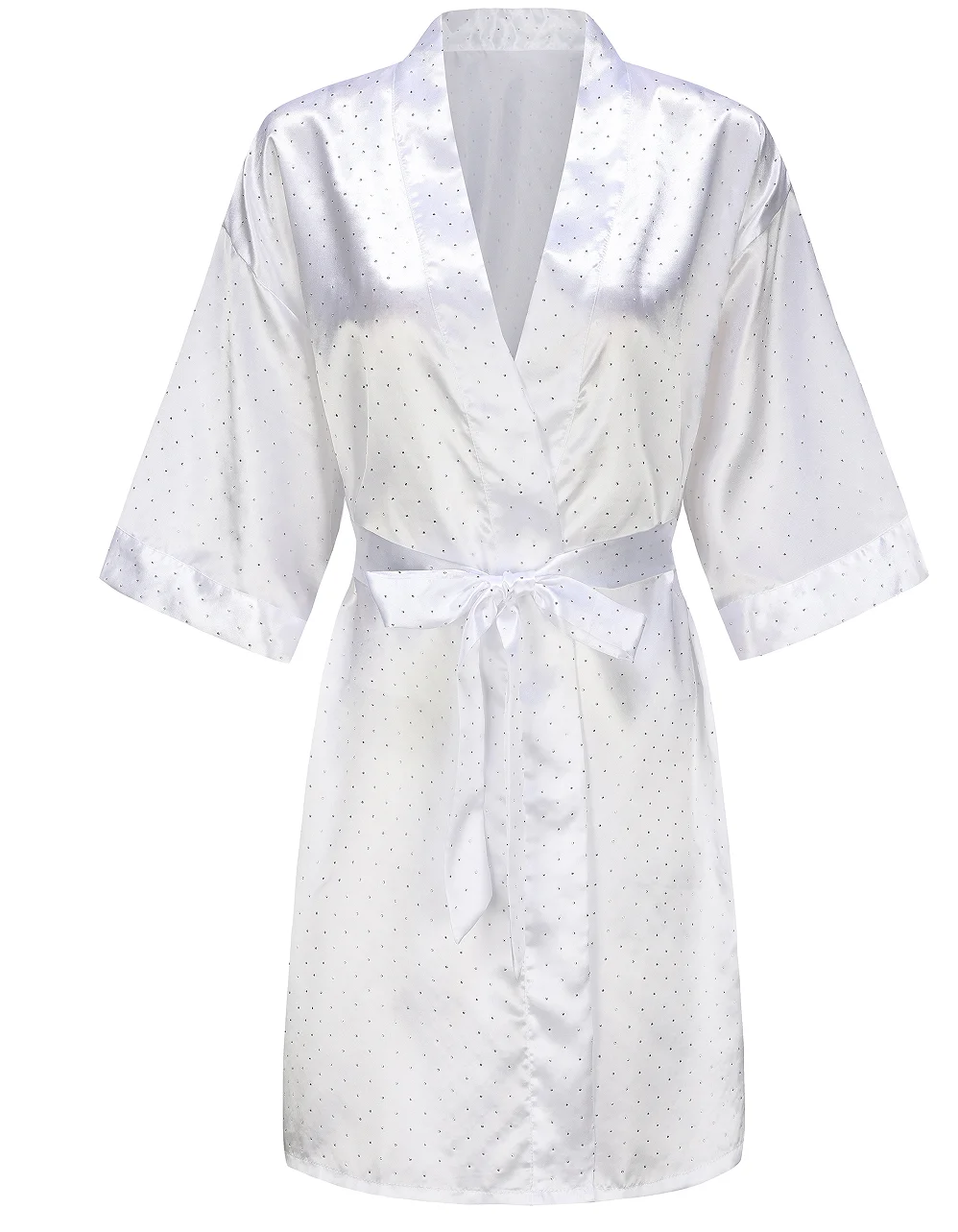 Luxury Bridal Short Robe Wedding Day Diamond Feather Dressing Gown Silk Satin Whi