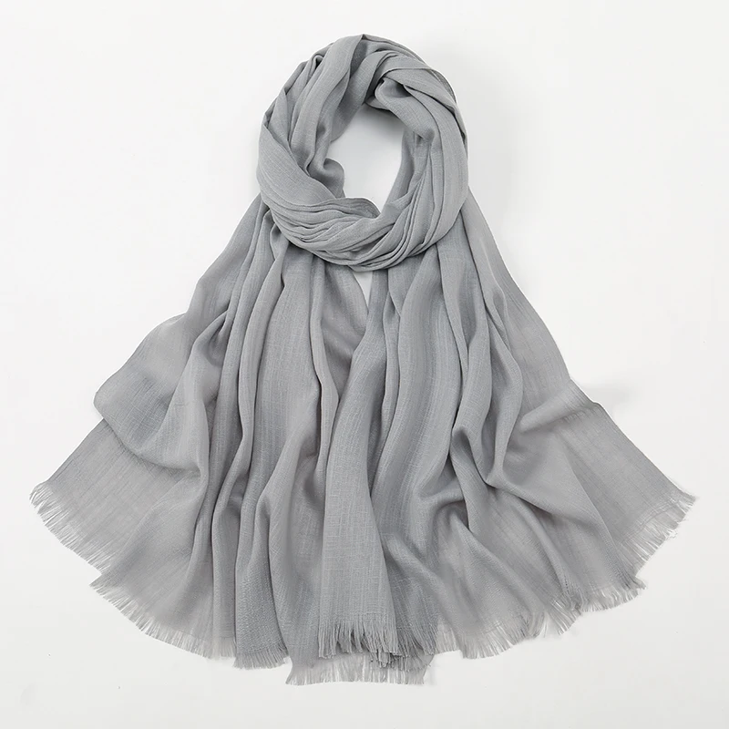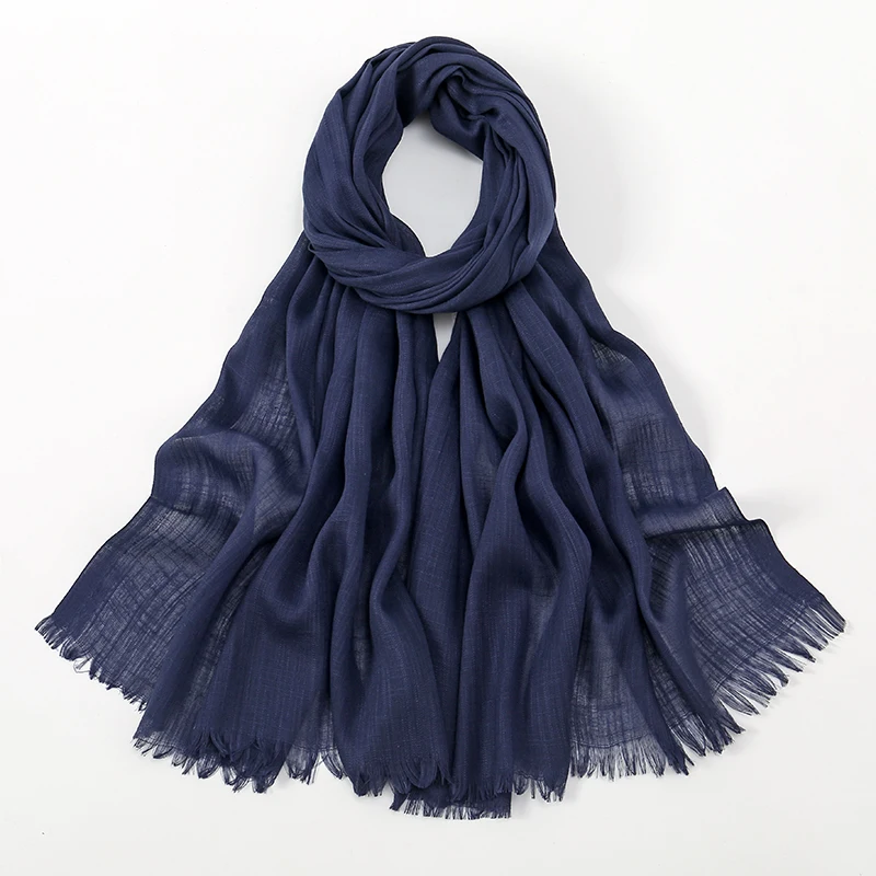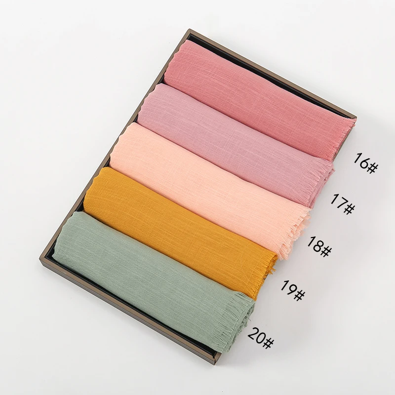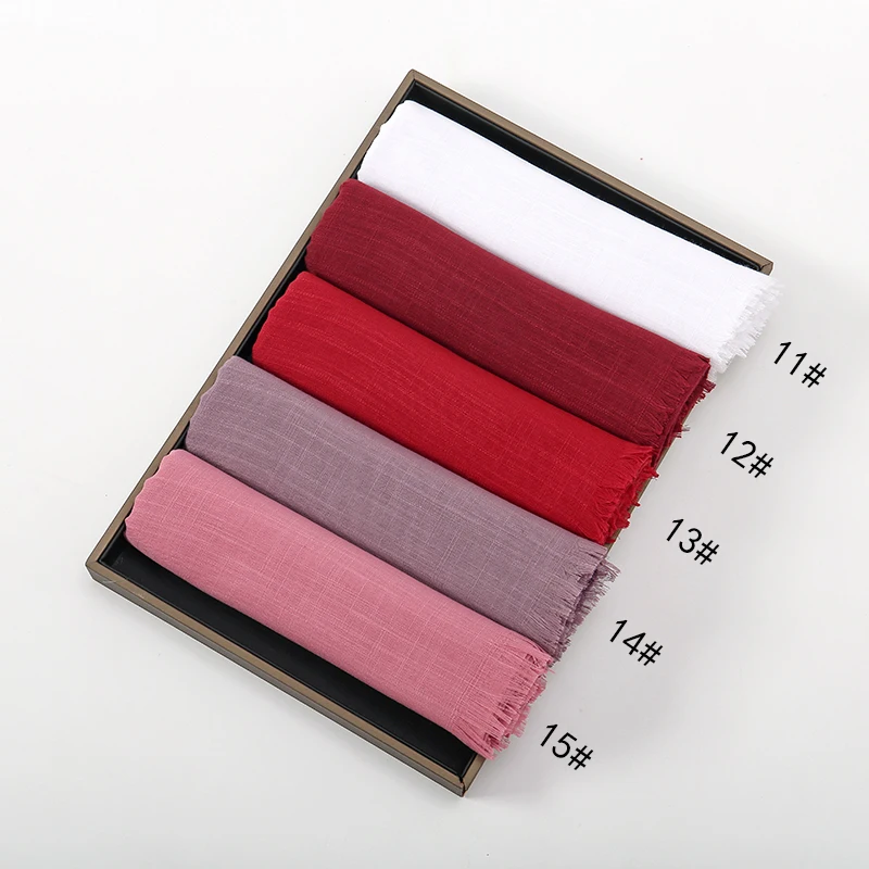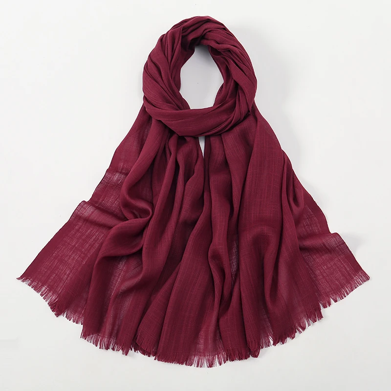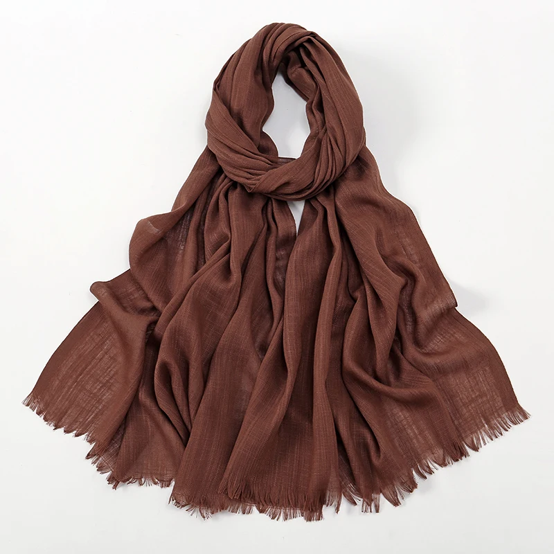 Plain Bamboo Cotton Hijab Scarves Women Solid Color Crinkle Turban Remove Edge Soft Cotton Premium Quality Hijab Shawl