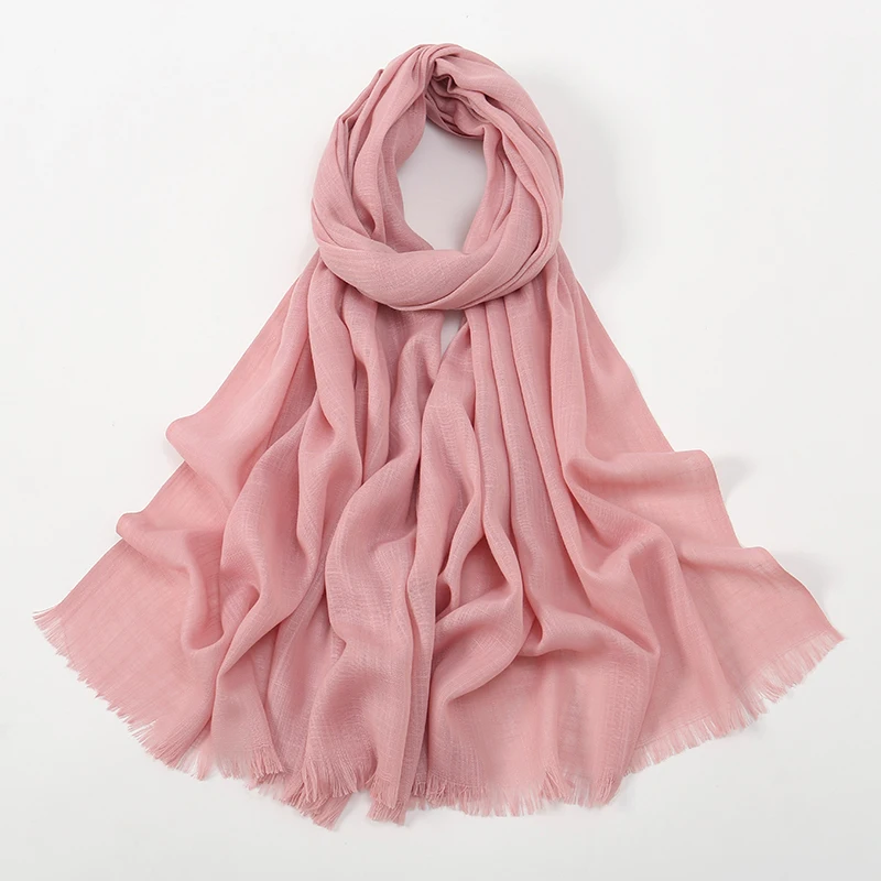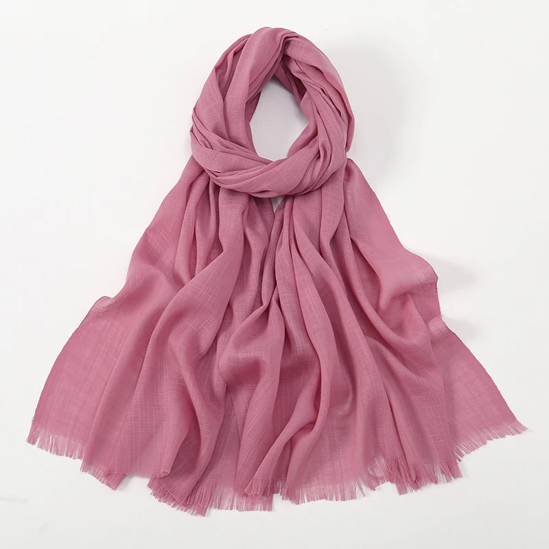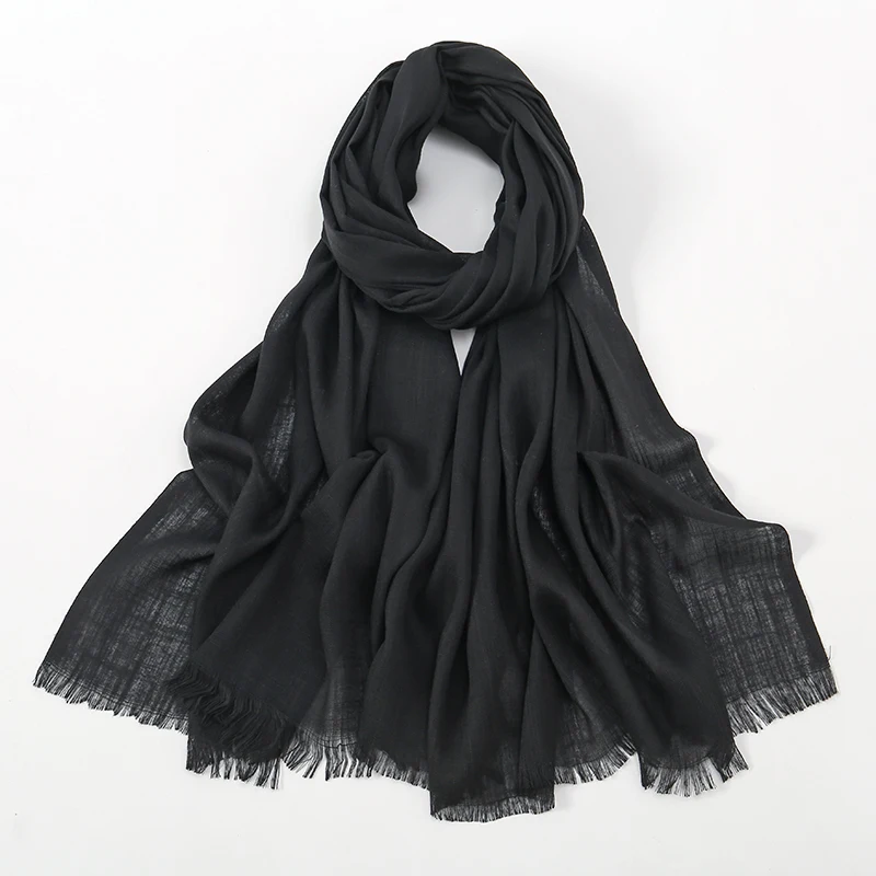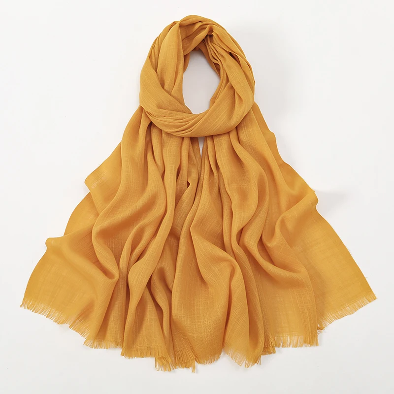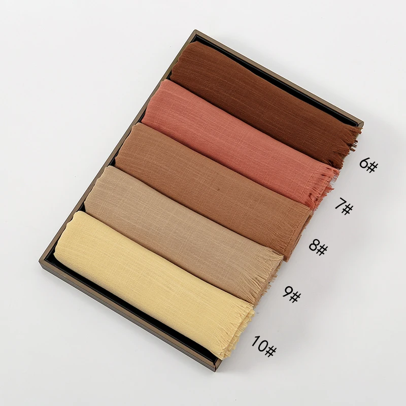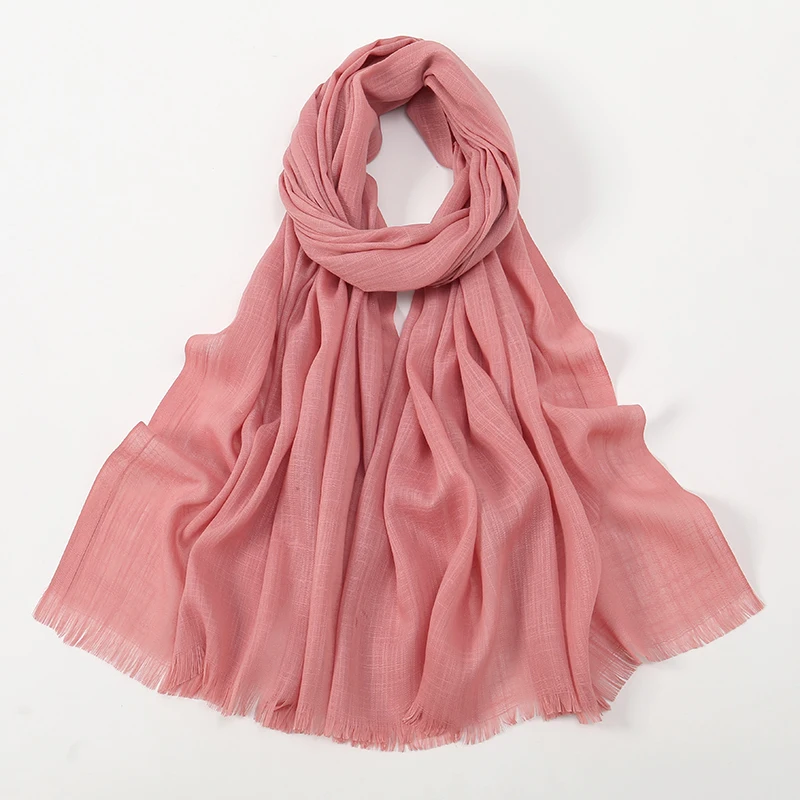 Plain Bamboo Cotton Hijab Scarves Women Solid Color Crinkle Turban Remove Edge Soft Cotton Premium Quality Hijab Shawl