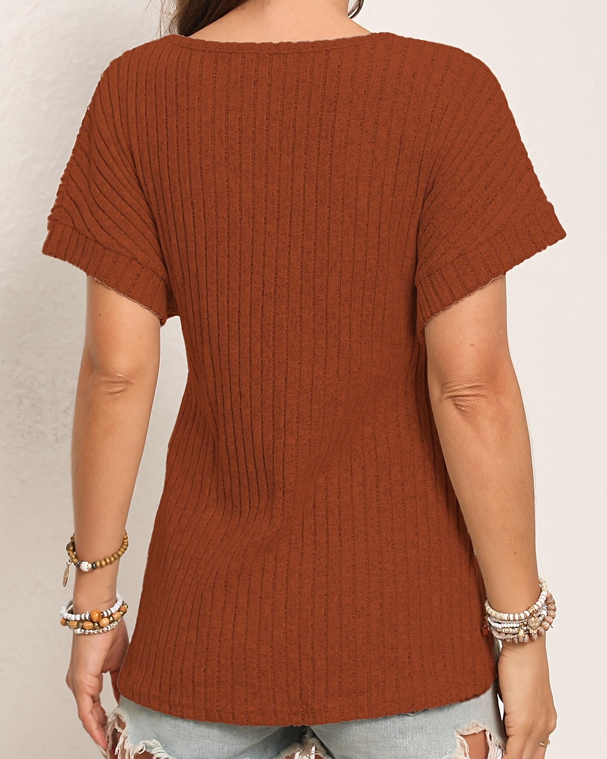 Solid Color Casual Striped V-Neck T-Shirt for Women, Directional Style