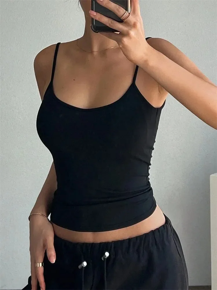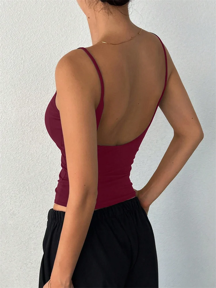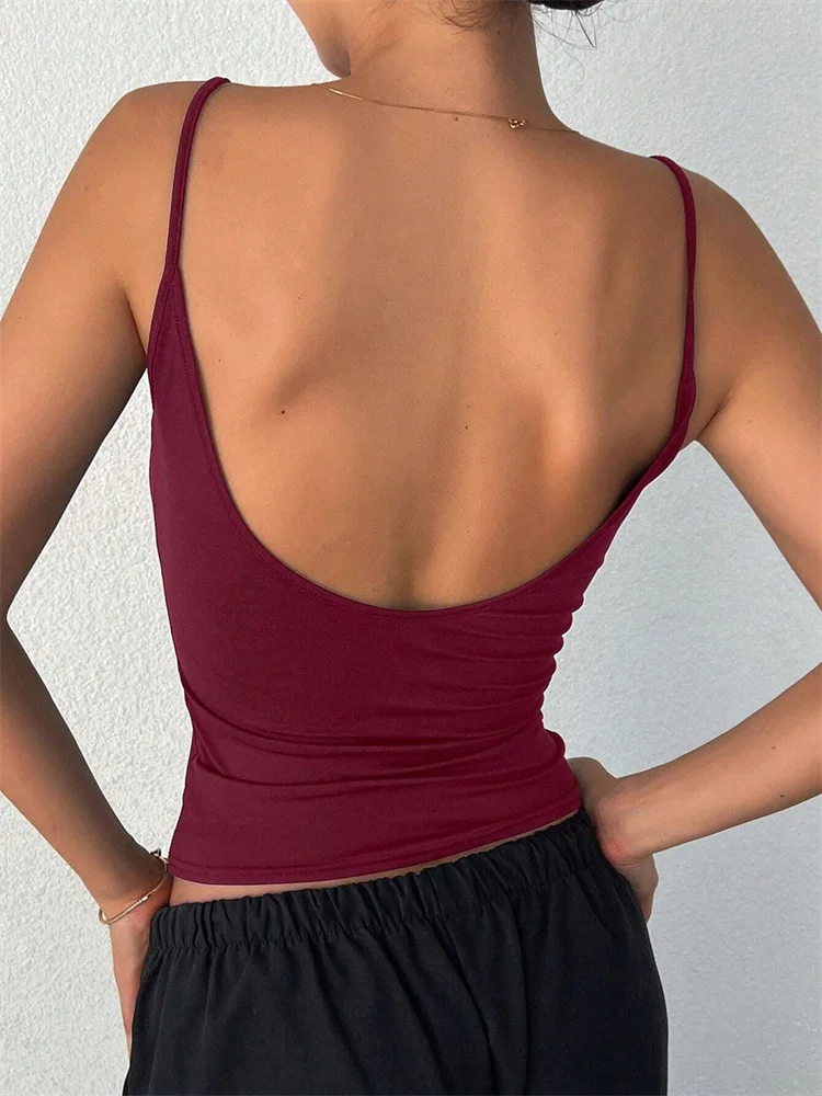 Women Backless Cami Crop Top Summer Solid Color Casual Sleeveless Top Streetwear Y2K Clothes